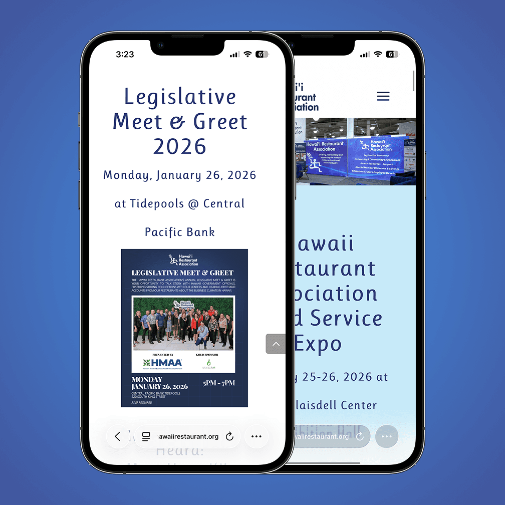 The Hawaii Restaurant Association is the third-largest advocacy organization in the state, representing more than 4,000 local restaurants and foodservice establishments across Hawaii.