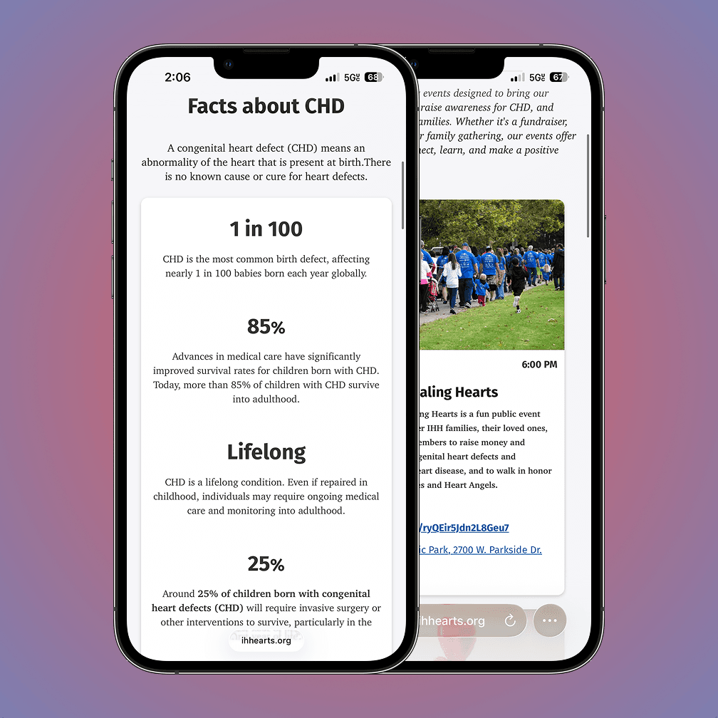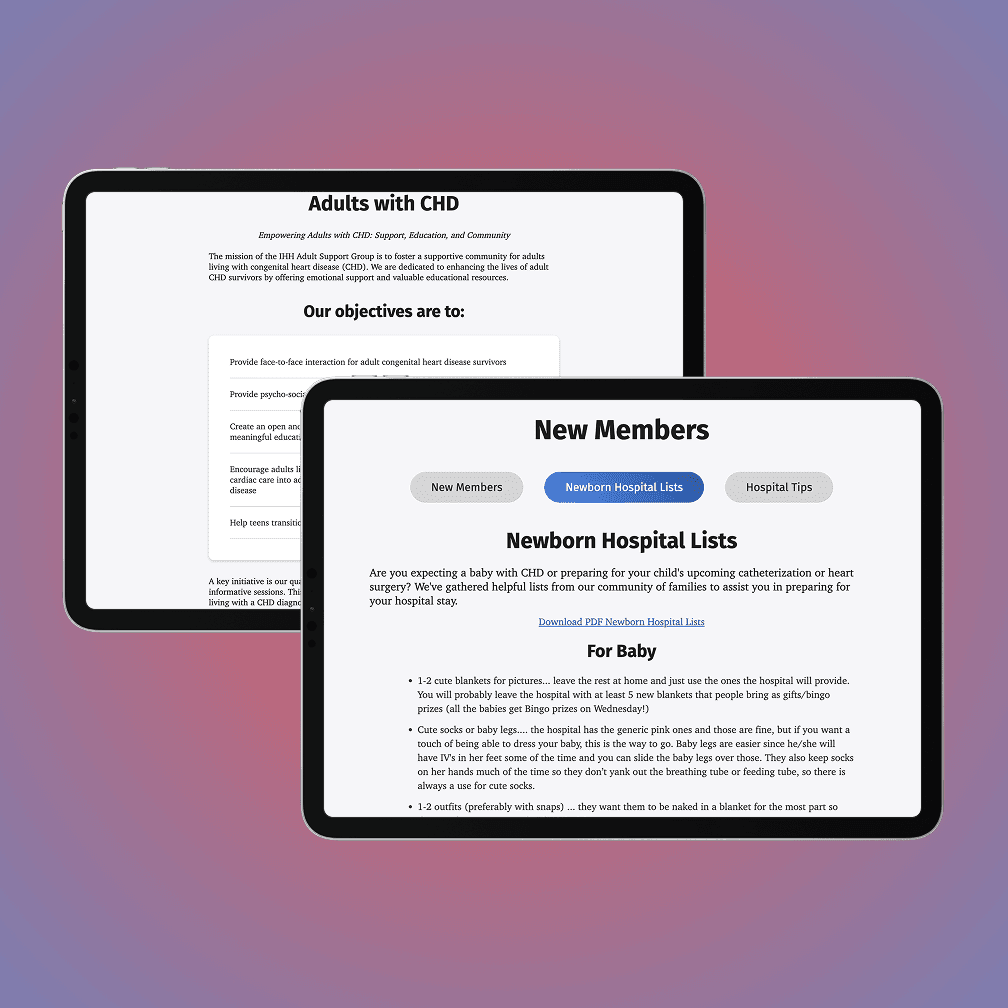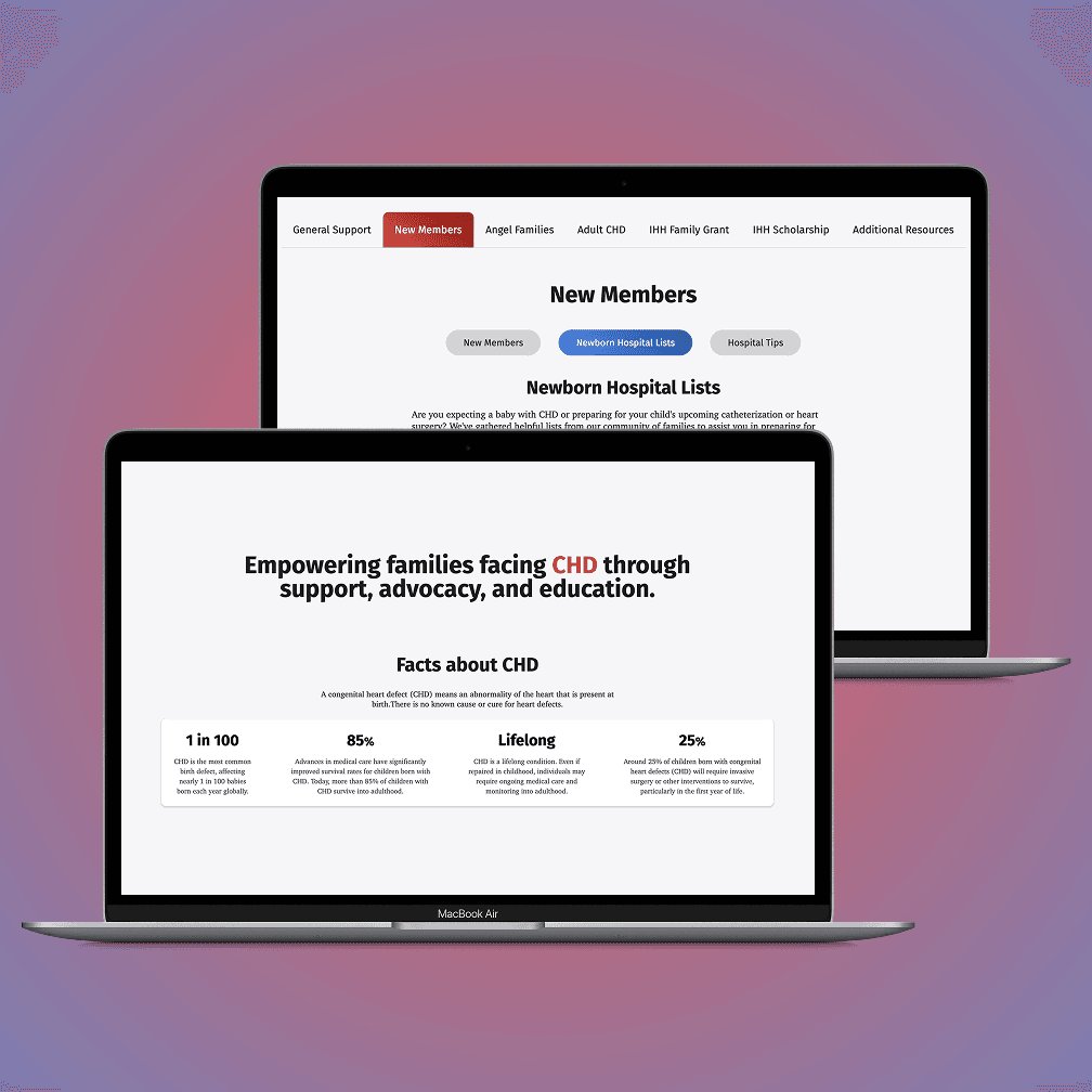 Before this project, the organization primarily relied on its Facebook page to share event information, handle event registrations, and provide community resources for families. However, to reach a broader audience and improve accessibility, they needed a dedicated website. The website would serve as a central hub for all of their resources, while also helping to build trust and provide reassurance for families newly navigating a congenital heart disease (CHD) diagnosis.
