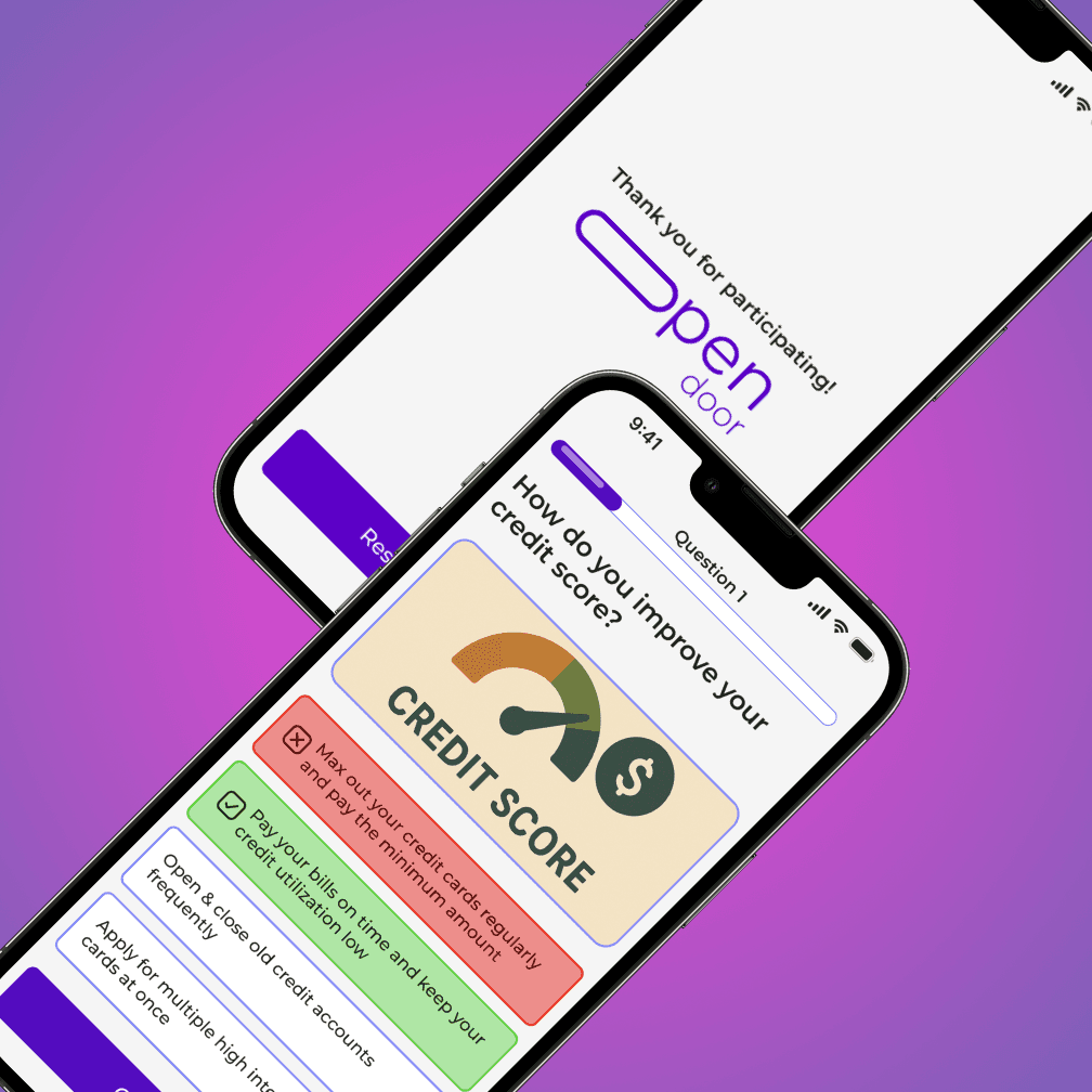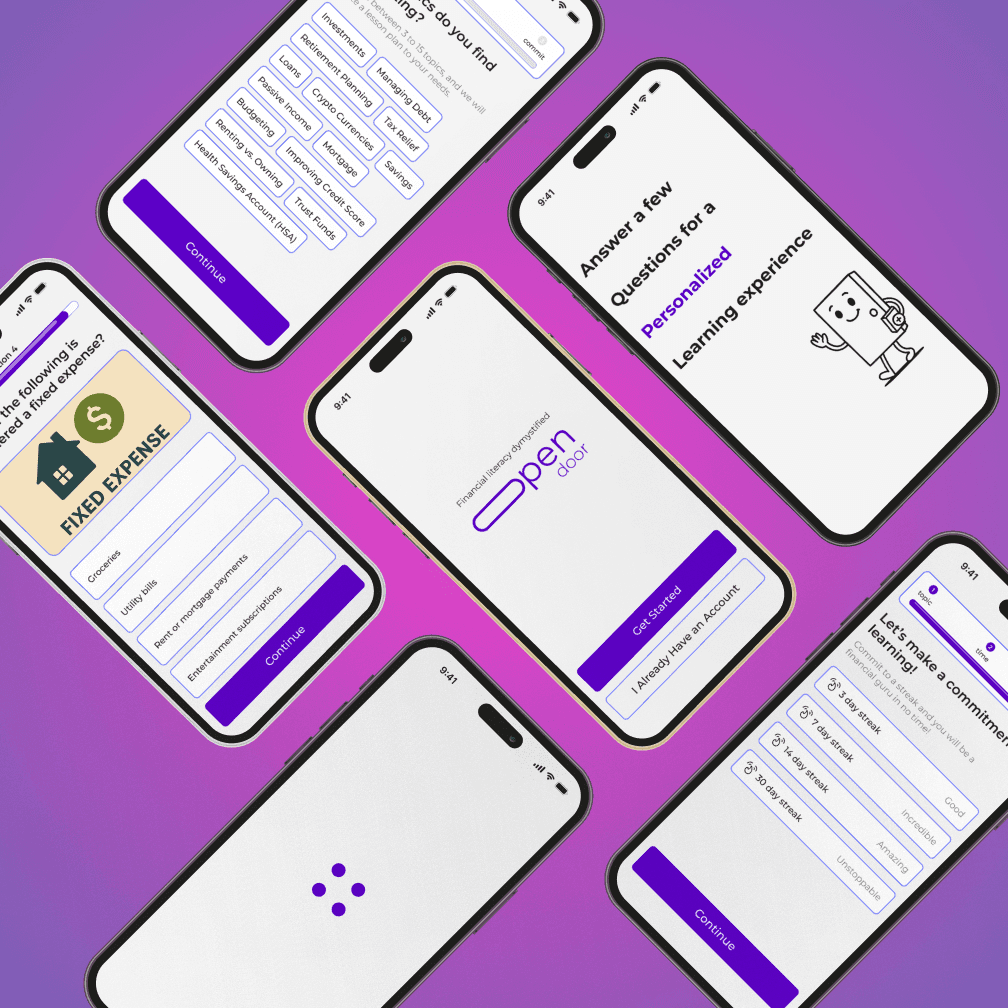 Our team built Open Door, a financial literacy app designed to help young adults, particularly first-generation Americans, navigate personal finance. First-generation Americans often face additional linguistic, cultural, and support-related barriers that contribute to lower financial understanding and poorer financial outcomes. Open Door was created to bridge that gap by making financial education more accessible, approachable, and fun.
