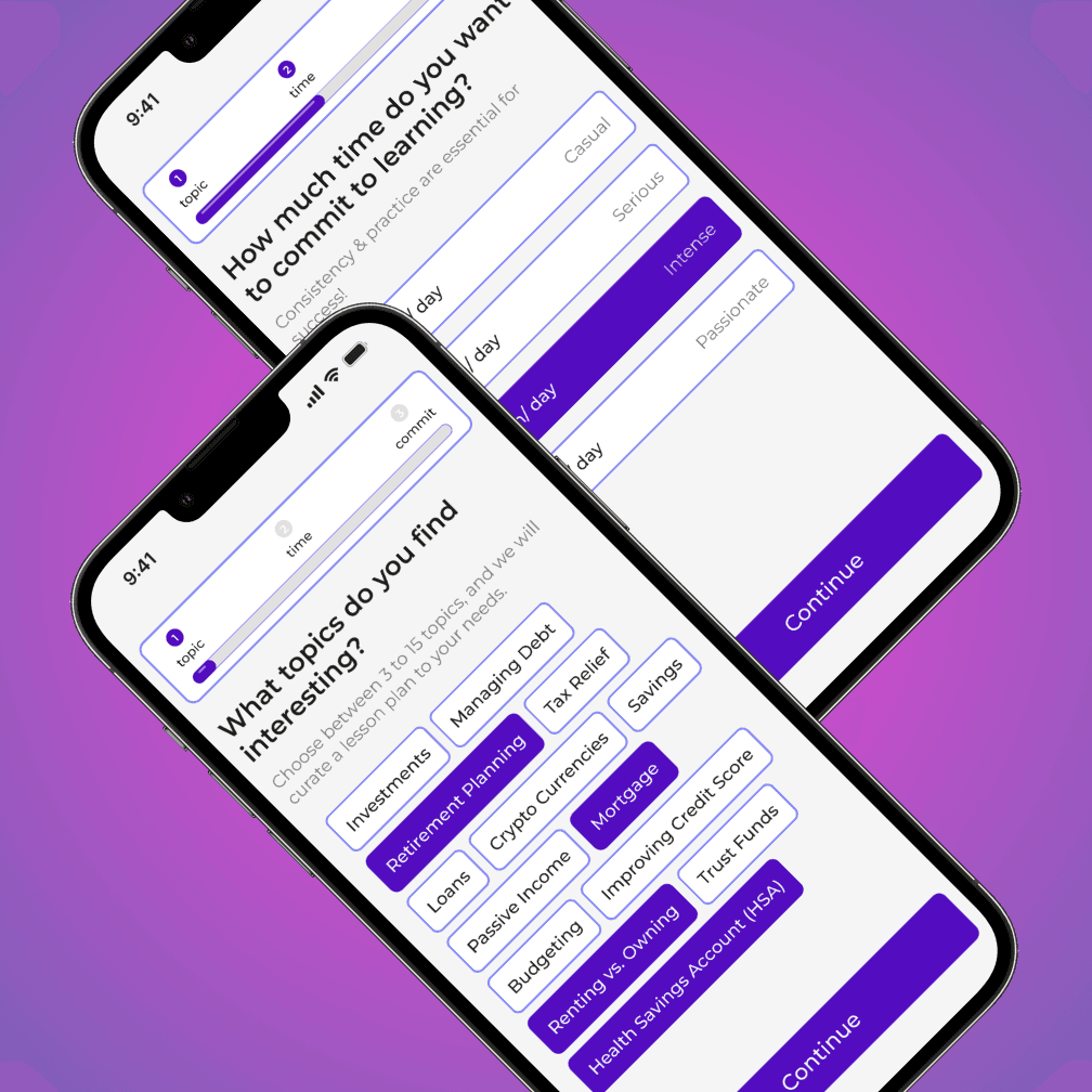 We drew inspiration from Duolingo's onboarding process, studying how it combines hands-on quizzes with immediate rewards to make learning feel effortless and fun. We applied the same thinking to finance, using gamified design elements to keep users motivated and coming back.